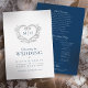 Programa de casamento do monograma do coração de prata. Personalize suas próprias iniciais de monograma design. Em azul escuro, prata e branco nítido. Outras cores e itens correspondentes estão disponíveis. Ideal para um casamento de temas azuis ou prata clássica, branco e azul da Prússia. © Heart wreath art e design por Sarah Trett para www.mylittleedenweddings.com no Zazzle