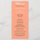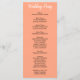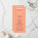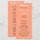 Bem-vindos aos seus convidados de casamento com a nova fruta inspirada nos programas de casamento modernos de fundo cantaloupe com texto branco e preto. Personalize frente e verso com os detalhes da cerimônia da noiva e do noivo para atender às suas necessidades. Projetado para seis damas de honra e nomes de padrinhos de casamento. Se você tiver uma festa de casamento menor, simplesmente exclua as pontes extras e as linhas de padrinhos de casamento não necessárias e remova o espaçamento extra entre títulos clicando no botão deletar para mover a linha para cima para manter o espaçamento de uniformidade. Se você adicionar mais de seis pessoas a cada uma delas, muitos precisarão clicar em Personalizar para reduzir o tamanho da fonte. Designs originais por TamiraZDesign.