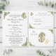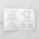 O cobrir design apresenta um fundo branco puro ao elegante texto de cor prateada. Nomes e eventos são exibidos em uma fonte Nupcial elegante. O canto superior direito mostra a imagem de Nossa Senhora da Fátima como um oval e limitada pela semelhança de rosas delicados e verde. A imagem esmaecida de uma cruz prateada acentua o fundo. Imagens de rosas delicados e verde também são exibidas nos cantos superior esquerdo e inferior direito. O texto de dentro é exibido no formato tradicional de um programa de missa nupcial católica e oferece espaço para até sete damas de honra e padrinhos de casamento. O cobrir traseiro contém uma obrigado que você envia de Noiva e Horário juntamente com uma mensagem memorial opcional. O texto é personalizável. Finalmente, a foto que você fornece é exibida no verso abaixo do texto. Projetado para coordenar com a "Virgem Maria Católica Suite de Casamento".
