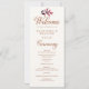 Um pequeno ramo da folhagem de outono do ruscus burgundy enfeita este elegante, simples, clássico e moderno programa de cerimônia de casamento outono. Apresenta caligrafia moderna e elegante com amplos florescimentos. Luxuoso, mas simples, clássico, mas chique, moderno, mas eterno. Uma escolha encantadora para um casamento no outono com cobre, laranja queimada, terracota, bege, vermelho, laranja e outras matizes de outono.
