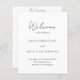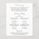 Programa clássico de casamento preto e branco com um simples design com um toque moderno e minimalista. As palavras de destaque estão em uma tipografia de script elegante e o texto restante está em uma fonte serif tradicional.