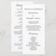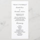 Um simples cartão de casamento preto e branco. Adicione a ordem da cerimônia e seus nomes na frente. Lá atrás há espaço para os nomes das festas de Bridal.