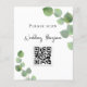 Um fundo branco chic. Decorado com eucalipto verde de cor aquosa, prigs. Personalize e adicione seu próprio código QR ao seu site com o programa de casamento.