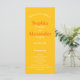 Bold Yellow e Orange Colorful Wedding Program. Para modificar o texto, selecione "Detalhes". Para ajustar a posição, a fonte ou a cor do texto, clique em "Editar usando a Ferramenta de Design".
