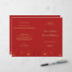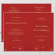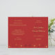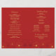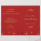Programa de casamento com design de cerejeiras em flor vermelhas e douradas.