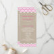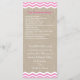 Chevron rosa e branco em um fundo ilustrado de estopa acentua este programa de casamento. Role para baixo para ver o resto da coleção e se precisar de itens adicionais para o seu casamento, entre em contato conosco em prettyfancyinvites@gmail.com com sua solicitação.