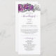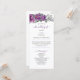 Lindo programa de casamento floral roxo com buquês de rosas e flores em aquarela. O design apresenta letra manuscrita elegante, arranjos florais roxos e magenta bonitos, folhas e folhagens cinza-verdes e uma pitada de confete roxo e dourado. Por favor, explore minha coleção Floral Roxa Luxuosa para itens correspondentes ou me envie uma mensagem para criar quaisquer designs adicionais que você precise.