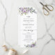 Este modelo de Programa de Casamento com Flores Violetas Românticas oferece uma maneira bonita e organizada de guiar seus convidados durante a cerimônia, apresentando delicadas Flores Violetas combinadas com folhagens exuberantes para uma estética botânica romântica e suave. A elegante mistura de tons violetas ricos e sotaques verdes naturais cria um design atemporal que complementa casamentos clássicos e inspirados em jardins. Com seu formato totalmente editável, você pode personalizar facilmente a ordem dos eventos, nomes e notas especiais para combinar com sua celebração. Perfeito para uso impresso e digital, este programa adiciona um toque refinado e coeso à sua suíte de papelaria de casamento.