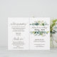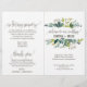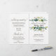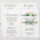 Este programa de casamento com folhagem é perfeito para um casamento rústico. O design apresenta uma moldura boho de folhas verdes e botânicos de folhagem verde. Inclua o nome da noiva e do noivo, a data e local do casamento, uma citação curta, mensagem de agradecimento, ordem de serviço, festa de casamento e um memorial "em memória amorosa".