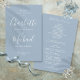 Programa de casamento com letra cursiva azul poeirento com uma tipografia moderna e elegante, este programa de casamento pode ser personalizado com as informações do seu dia especial. Concebido por Thisisnotme