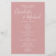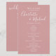Elegante programa de boas-vindas de casamento com letra de assinatura rosa empoeirada com nomes em estilo de assinatura. Concebido por Thisisnotme©
