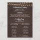 Dê um charme rústico à sua cerimônia de casamento com o nosso Programa de Casamento com Luzes de Corda em Madeira Rústica Marrom. Este requintado programa de casamento apresenta um fundo de madeira marrom quente, criando uma atmosfera aconchegante e convidativa para o seu dia especial. Luzes de corda delicadas adicionam um toque de romance e capricho ao design, tornando-o perfeito para casamentos ao ar livre ou com tema rústico. Personalize o programa com os detalhes do seu casamento para criar um souvenir único para você e seus convidados. Guie seus entes queridos através da sua cerimônia enquanto adiciona um toque de beleza natural à sua decoração com este programa elegante.