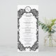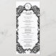Este programa de casamento moderno apresenta um design de moldura preto e branco ousado com floreios elegantes de damasco, criando um visual refinado e sofisticado. A frente destaca todos os detalhes da cerimônia em um layout limpo, enquanto a parte de trás centraliza os nomes do casal dentro de uma moldura decorativa. Sua elegância moderna combinada com o contraste atemporal entre preto e branco o torna uma escolha perfeita para casamentos formais, garantindo sofisticação e apresentação memorável.