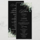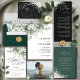Guie seus convidados através do seu dia especial com o nosso Programa de Casamento de Folhagens Modernas Esmeralda. Com um deslumbrante design de aquarela de folhas de eucalipto e delicadas flores de jasmim, este programa elegante complementa perfeitamente um tema de casamento de folhagens ou aquarela. Com um layout limpo e moderno, oferece uma maneira elegante de compartilhar detalhes da cerimônia, ordem dos eventos e notas especiais, garantindo que seus convidados se sintam incluídos em cada momento.