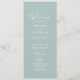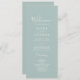 Este programa de casamento de coordenadas verdes é perfeito para um casamento de boho. O elegante, porém rústico design apresenta um verde pastel pálido com um toque moderno. Coordena-se com a Airy Greenery Collection, de Fresca e Yummy Paperie. Inclua os nomes do casal, a data e o local do casamento, a mensagem do obrigado, a ordem de serviço, a festa de casamento e um memorial "em memória amorosa" opcional.
