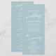 Este programa de casamento de coordenadas de praia aqua é perfeito para um casamento de destino tropical. A simples e moderna design apresenta uma surpreendente turquesa, azul-lacre e azul-claro que lembra o mar. É aliado a uma caligrafia elegante. Inclua o nome da noiva e do noivo, a data e o local do casamento, a mensagem do obrigado, a ordem do serviço, a festa noiva e um memorial "em memória amorosa" opcional.