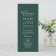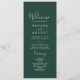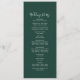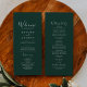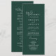 Este programa de casamento coordenado de esmeralda verde é perfeito para um casamento de boho. A elegante, mas rústica design apresenta verde escura moderno com uma sensação moderna de floresta boêmica. Coordena-se com a Coleção Emerald Greenery de New & Yummy Paperie. Inclua os nomes do casal, a data e o local do casamento, a mensagem do obrigado, a ordem de serviço, a festa de casamento e um memorial "em memória amorosa" opcional.