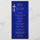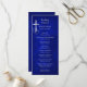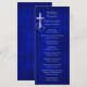 Esta elegante carta do programa de casamento mostra dois corações prateados no pé de uma cruz prateada espantosa no canto superior esquerdo. As imagens da cruz e do coração brilham contra um fundo abstrato azul. Há muito espaço para o seu texto personalizado, também em prata. Se precisar alterar a fonte, o tamanho, o local ou a cor do texto, use Personalizar. O verso do convite tem o mesmo fundo azul sem o texto ou as imagens.