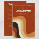 Este programa de casamento retrógrado dos anos 70 apresenta linhas onduladas em bronzeado, marrom e laranja, lembrando os groovy 70 e estilo de vida hippie. Folha de papel folheada com script branco próximo às linhas de curva de abstrato. Alcance junto com este design de som terrestre divertido.