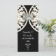 O clássico papel preto e branco clássico de renda corta estilo antigo e tradicional cor damasco de vinheta e um bonito arco prateado. Um anúncio sofisticado, bonito e moderno e elegante da igreja de luxo formal do programa de casamento da igreja de casamentos, que pode ser facilmente personalizado com os nomes da noiva e do noivo e outros convidados noivas enviam mensagens aos modelos para criar seu próprio programa de casamento profissional de luxo para seus eventos e comemorações especiais. Personalize facilmente a cor de fundo, de uma grande variedade de cores personalizadas para criar seu próprio visual totalmente diferente a esse único e atual convite de luxo, de formato clássico, cortado em vintage. Visite a LOJA PERSONALIZED_ WEDDINGS para combinar conjuntos coordenados de suítes de casamento.