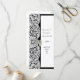 O padrão clássico clássico de filigrana de renda antiga branca e preta e um plano de fundo que pode ser personalizado a partir de uma gama de cores e de um arco de cetim branco. Um anúncio sofisticado e bonito feminino e moderno e simples, mas elegante, do programa de casamento formal da igreja de casamentos de luxo que pode ser facilmente personalizado com os nomes de noivas e noivos e outros textos de convidados noivas para os modelos para criar seu próprio programa de casamento profissional de luxo para seus eventos e celebrações especiais. Personalize facilmente a cor de fundo, de uma grande variedade de cores personalizadas para criar seu próprio olhar totalmente diferente a este único convite de luxo sobre o tema do luxo, que é a antiga safra contemporânea. Visite a LOJA PERSONALIZED_ WEDDINGS para combinar conjuntos coordenados de suítes de casamento.