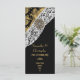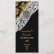 Damasco clássico clássico de preto e ouro velho com padrão branco de filigrana de rendas e uma antiga joia antiga de ferro de cristal de diamante. Um anúncio sofisticado, bonito e moderno e elegante do programa de casamento da igreja formal do casamento de luxo, que pode ser facilmente personalizado com os nomes da noiva e do noivo e outros convidados noivas enviarem um texto aos modelos para criar seu próprio programa de casamento profissional de luxo para seus eventos e comemorações especiais. Personalize facilmente a cor preta na metade inferior, de uma grande variedade de cores personalizadas para criar seu próprio olhar totalmente diferente a este convite profissional de luxo, único e contemporâneo, da herança antiga. NOTE que a cor do ouro não é metálica. Visite a LOJA PERSONALIZED_ WEDDINGS para combinar conjuntos coordenados de suítes de casamento.