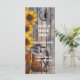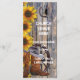 Feira ocidental selvagem ou tema do cowboy, sofisticada flor de girassol amarelo-bonito e velha porta de fazenda de madeira com textura de madeira, com botas de cowboy sapato de cavalo e gráficos de roda de vagão, um moderno e elegante primavera de estilo rústico de luxo ou anúncio da igreja do programa temático de verão que pode ser facilmente personalizado com a noiva e o nome do noivo e o texto para os modelos simples para criar programa de casamentos feminina, natural ou ocidental, para as suas ocasiões e celebrações especiais. Visite a LOJA PERSONALIZED_ WEDDINGS para combinar conjuntos coordenados de suítes de casamento.