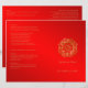 Este elegante design, chamado Casamento Índio Flor Vermelho e Dourado, tem um fundo vermelho. Na frente há uma borda de flores estilizada com brilho dourado no topo com uma flor no canto inferior direito. No centro há outra flor para destacar o nome do casal em ouro abaixo. O fundo tem um fundo vermelho com o seu texto em ouro. Este conjunto tem convites, cartões salve a data, cartões de resposta, cartas de agradecimento, cartões de mesa, rótulos de vinho, programas de casamento, e muito mais peças de papelaria de casamento, favores e presentes para coordenar. Todos os elementos são impressos nos nossos produtos de alta qualidade, não incluem ouro real, joias, gravuras ou outros elementos têxteis. Todos os designs são copyright Noteable Express, Inc. Todos os direitos reservados.