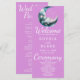 Apresentamos o nosso Programa de Casamento de Serenidade Luminosa Encantadora, uma fusão deliciosa de elegância e encanto celestial. Este programa de casamento roxo claro apresenta uma design cativante e moderna, mostrando uma vívida lua verde e rosa roxa cercada por nuvens etéreas em tons complementares de verde e rosa. Delicadas estrelas brancas e rosa douradas aspergem o céu noturno, acrescentando um toque de magia e mística ao seu dia especial. Projetado para casais que desejam um tema de casamento que seja único e encantador, a paleta de cores suave e sonhadora de ouro roxo-claro, verde, rosa, branco e rosa, estabelece o palco para uma celebração inspirada no celeste. A frente do programa exude uma sensação de serenidade, capturando a beleza de uma noite iluminada e convidando seus convidados a embarcar em uma jornada mágica com você. A parte de trás do programa mostra uma lista criteriosa dos caros membros da sua festa de casamento, reconhecendo seus importantes papéis em sua celebração. Dentro, o texto é apresentado com gosto em preto clássico e cinza, utilizando uma simples fonte de bloco para clareza e legibilidade. No entanto, as palavras "Bem-vindo", "Cerimônia" e "Festa de casamento" são elegantemente reproduzidas em uma fonte decorativa. Esse roteiro gracioso adiciona um toque de sofisticação e charme, aprimorando o ambiente encantador geral do design. Aceite o fascínio mágico da lua e das estrelas, e confunda sua celebração de casamento com a energia cativante do cosmos. Nosso Programa de Casamento de Serenidade Moonlit Encantadora encantará seus hóspedes e criará uma atmosfera celestial que será lembrada nos próximos anos. Deixe o encantamento da lua iluminar sua história de amor, fazer seu dia de casamento uma experiência celestial inesquecível.