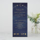 Elegante programa de casamento com uma bela ilustração mostrando fases da lua e tipografia moderna.