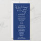 Apresentamos o nosso Programa de Casamento Azul Celestial Dark Sapphire, uma escolha cativante para os casais que procuram uma atmosfera encantadora e mística para a celebração do casamento. Este elegante programa de casamento apresenta um fundo azul-safira profundo, enfeitado com uma fotografia de tirar o fôlego de uma lua crescente em tons de rosa e verde, cercado por delicadas estrelas rosa e brancas contra um pano de fundo de verde-temperado e nuvens de cinzas. A imagem celeste cria um ambiente mágico, fazer a escolha perfeita para casais desejando um tema de casamento que seja único, celeste e verdadeiramente místico. No verso do programa, os nomes dos vossos estimados membros da festa de casamento estão cuidadosamente listados, enfatizando os seus papéis significativos no vosso dia especial. O texto do programa é meticulosamente apresentado numa combinação clássica de preto e cinza, utilizando predominantemente uma simples letra de bloco para clareza e legibilidade. Para adicionar um toque de elegância e charme, frases-chave como "Bem-vindo", "Cerimônia" e "Festa de casamento" são delicadamente escritas em uma fonte decorativa bonito, melhorando o encanto geral e a atração do design. Este Programa Celestial de Casamento Azul de Sapphire Escuro Celestial não serve apenas como um guia prático para seus convidados, mas também como um bem-estar querido, capturando o mistério e a maravilha de uma noite celestial. Com suas imagens celestiais e fontes elegantes de roteiro, este programa define o tom perfeito para um casamento cheio de encanto celestial, amor, e memórias inesquecíveis sob o céu noturno mágico.