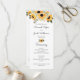 Este programa de casamento de girassol rústico é perfeito para uma cerimônia de jardim ao ar livre. Apresenta lindos girassóis de aquarela com verde de sábio rústico e respiração de bebê. É perfeito para um casamento no jardim ou um casamento no celeiro de um país. O esquema de cores amarelo e verde-sábio é uma bela paleta de cores para um verão ou casamento outono tardios. Para mais personalização, clique no link "personalizar mais" e use nossa ferramenta design para modificar esse modelo.