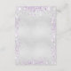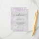 Um programa de casamento moderno e elegante, linha do tempo. Fundo metálico de aspecto fino prateado, decorado com poeira brilhante prateada roxa e falso. Personalize e adicione seus nomes e detalhes do casamento. Letras pretas coloridas.
