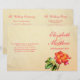 Um simples rosa de chá de arte de dois lados num programa de casamento rústico. Parte do conjunto de papéis de carta de rosa de chá. Bonito tonalidade vermelha, laranja e rosa amarela. Edite este programa de casamento com seu próprio nome, datas, texto da cerimônia, assistentes de festa de casamento e obrigados. Um programa simples, mas elegante, simplesmente substitua o texto de amostra pelos detalhes de suas informações de casamento e dobre programas ao meio na entrega. Simples programa de cerimônias de casamento rústicas, mas modernas e românticas. Design e pintura aquosa de Sarah Trett.