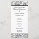 Um design do programa de casamento para combinar com a tatuagem floral do Halloween. Este design monocromático apresenta duas bandas de um padrão floral ilustrado de rosas, teias, aranhas e morcegos e muito espaço para sua ordem de serviço no meio, em uma mistura de fontes pretas elegantes sobre um fundo branco. Isso seria perfeito para um casamento temático de Halloween ou como parte de uma festa de Halloween.