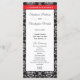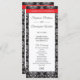 Programas de casamento tema damasco com faixa vermelha de sotaque e cor damasco branca e negra formal.