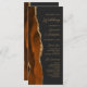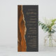 A borda esquerda deste elegante programa de casamento moderno apresenta uma cor de água laranja queimada, aparada com falsa brilho dourado. O texto personalizável combina o script de caligrafia dourada e sans serif fonts em um fundo escuro.