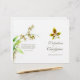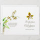 Flor de orquídea simples e dupla de solteiro num programa de núpcias de cor branca. Parte do conjunto de papéis de carta de casamentos de orquídeas de cor aquática de arte. Bonito verde limão, cor-de-rosa, vermelha e creme. Edite este programa de casamento com seu próprio nome, datas, texto da cerimônia, assistentes de festa de casamento e obrigados. Um programa simples, mas elegante, simplesmente substitua o texto de amostra pelos detalhes de suas informações de casamento e dobre programas ao meio na entrega. Programa moderno e romântico de cerimônias de casamento. Pintura de arte e design por Sarah Trett.