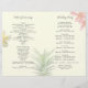 Flores tropicais no programa de casamento fora de branco. Personalize quatro páginas com seu texto usando modelos modernos de fontes. Abacaxis, hibisco, plumeria e flores de pássaro-do-paraíso decoram este programa personalizado único e bonito para uma cerimônia de casamento havaiana ou com tema de praia. Inclua uma mensagem pessoal aos convidados, que aparecerá na última página (traseira) do programa, uma vez dobrada. O cliente dobrará os programas após a compra.