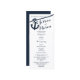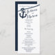 Ancoragem e corda programas de casamento com cartão de rack impresso a design náutico em texto azul escuro de marinho.
