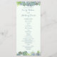 Cartão de montagem clássico e elegante do programa de casamento, programa de casamento de jardinagem suculenta em tons de azul e verde com texto fácil de personalizar, este programa seria excelente para qualquer casamento.