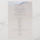 Programa de casamento de praia com fundo de imagem de areia. Papel flyer de barato duplo, com modelos de texto em ambos os lados. Script para os nomes da noiva e do noivo, e o restante é um estilo de fonte fino e impresso. Personalize facilmente a seção por seção. Verifique cuidadosamente o texto, pois ninguém o verificará antes de imprimir.
