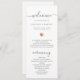 Este programa chic de casamento brilha com simplicidade. A tipografia moderna e a caligrafia deslumbrante acentuadas por um bonito coração no ouro rosa, esta ordem de serviço com um resumo das pessoas-chave no verso é minimalista e elegante.