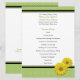O texto sobre o programa de casamento da margarida verde e bolinhas branca, laranja e gerbera amarela, é perfeitamente personalizável. Para alterar o texto, use a opção personalizar. Para alterações mais abrangentes, como alterações na fonte, cor da fonte, tamanho da fonte ou layout de texto, use a opção personalizar. Além disso, se você precisar mover o texto, você pode fazer isso usando personalizá-lo. As cores deste programa de casamento são amarelo, verde, preto e branco. O programa está atualmente configurado para impressão no tipo de papel comum, mas ficaria bonito em qualquer outro tipo de papel.