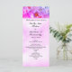 Programa de casamento em um cartão de rack. Belo design com uma borboleta laranja tocando miçangas de pérolas brancas em forma de coração. Outra borboleta se mistura ao buquê de rosas rosas, roxas e azuis. Imagem do papel pergaminho. Converta isso para qualquer ocasião. Adicione uma foto e/ou altere o texto. Personalize este modelo com suas informações.