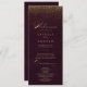 Programa de Casamento de Caligrafia Dourada Burgun