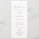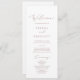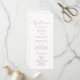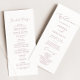Este delicado programa de casamento de caligrafia em rosa é perfeito para um casamento moderno. A design romântica minimalista apresenta uma magnífica e elegante tipografia cor-de-rosa rosa, empoeirada, num fundo branco, com um aspecto simples e limpo. Inclua o nome da noiva e do noivo, a data e o local do casamento, a mensagem do obrigado, a ordem do serviço, a festa noiva e um memorial "em memória amorosa" opcional.