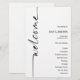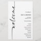 Programa de Casamento de Caligrafia Elegante. Um tamanho de preço orçamentário de 5,5" x 8,5", um design tipográfico moderno com boas-vindas em um script set e rotacionado.
