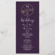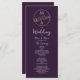 Elegante, chic, moderno, minimalista, simples programa de casamento roxo com monograma único de aves de casal desenhadas à mão e roteiro de caligrafia manuscrito.