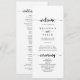 Este programa de casamento de caligrafia minimalista é perfeito para um casamento rústico. O design simples e elegante apresenta a tipografia de scripts clássicos e ricos em preto e branco.